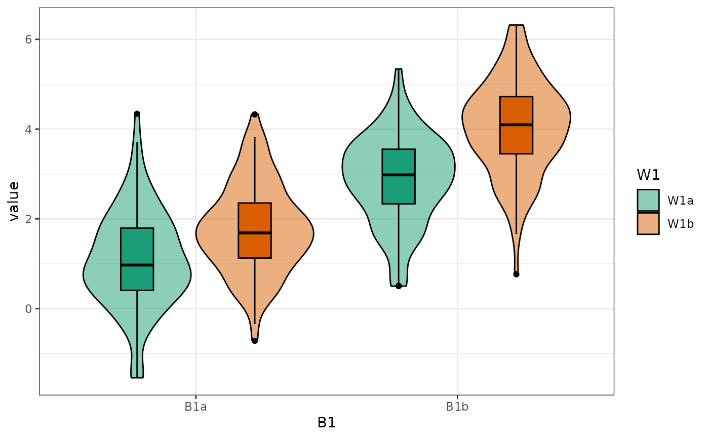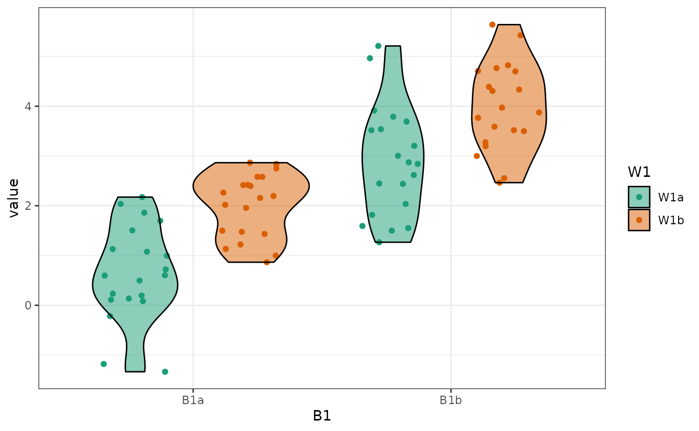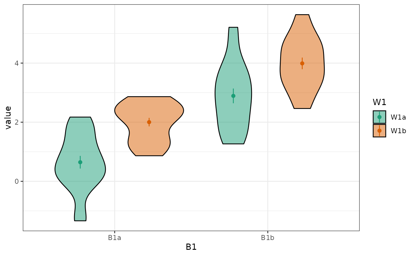 plot_design(data, geoms = c("violin", "pointrangeSE"))