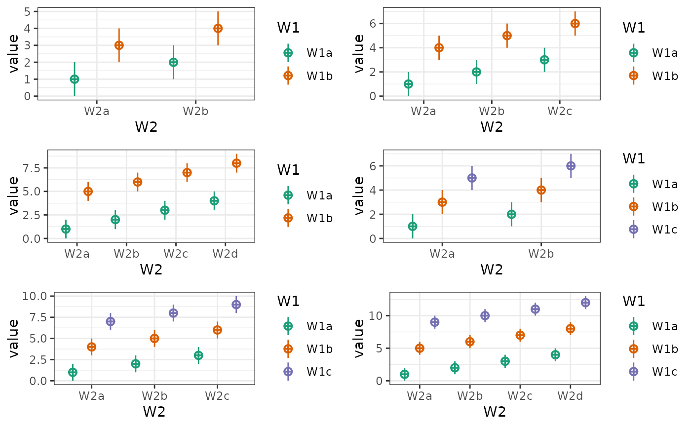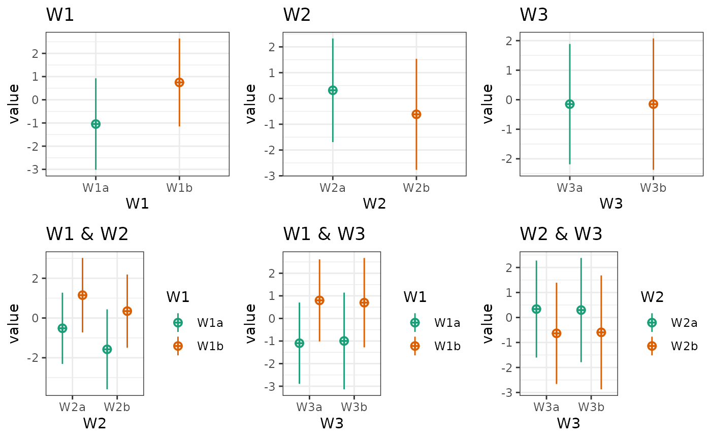 W12 <- plot_design(data, "W1", "W2", geoms = geoms) + ggtitle("W1 & W2")