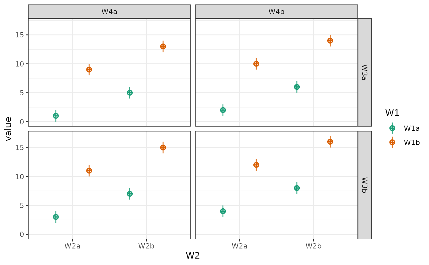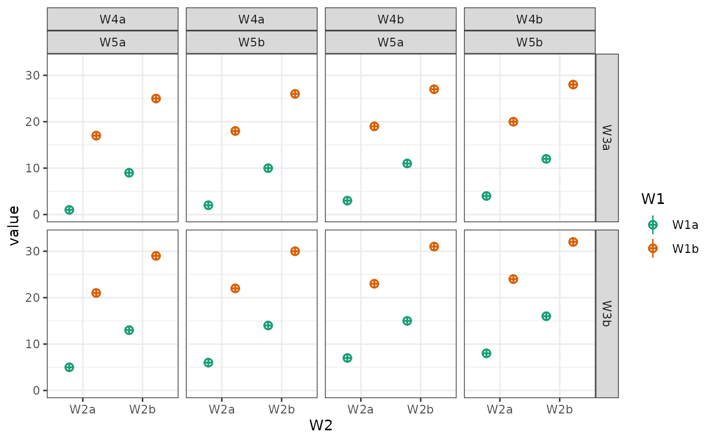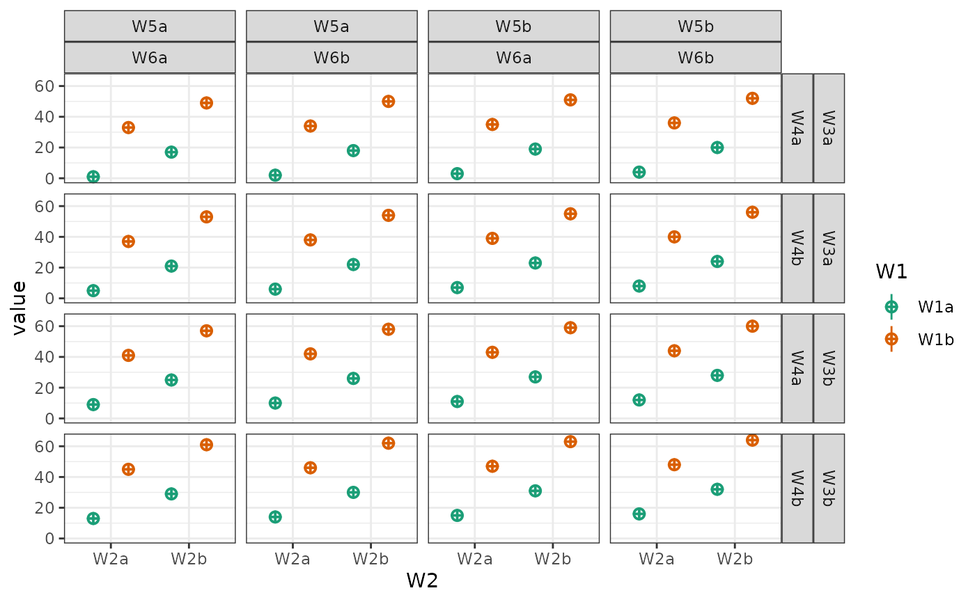 W2 <- plot_design(data, "W2", geoms = geoms) + ggtitle("W2")