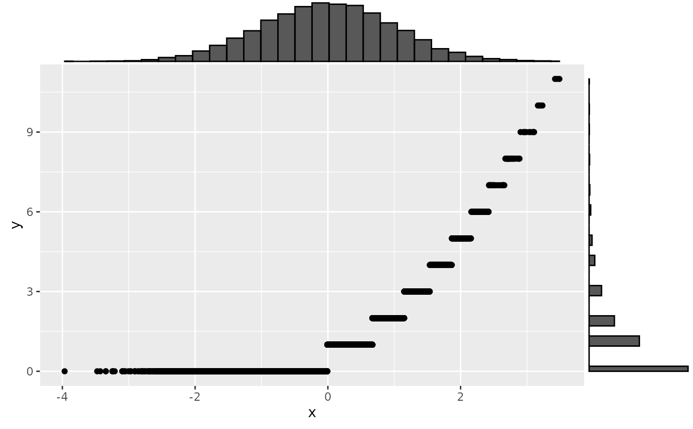 y <- norm2nbinom(x, 1, prob = 0.5)