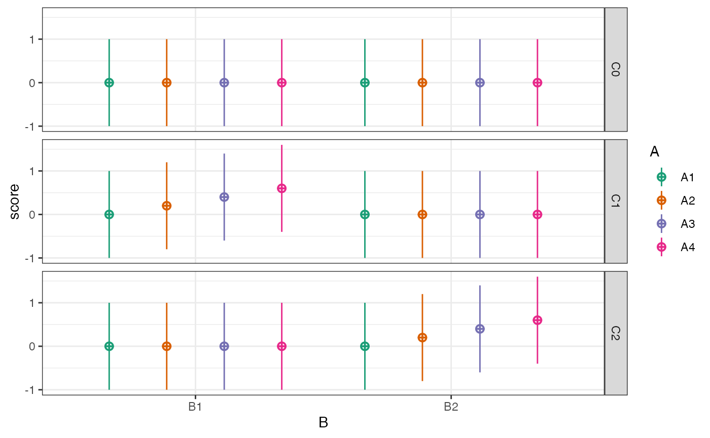study_analyse(s) %>% get_result()## Contrasts set to contr.sum for the following variables: C